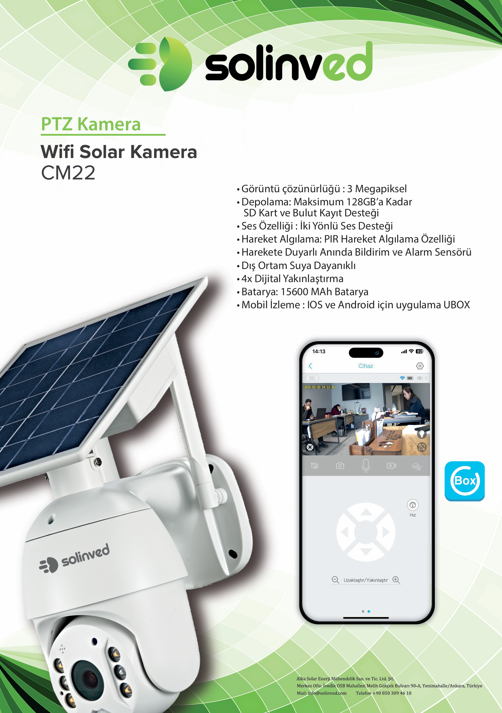 SOLİNVED GÜNEŞ ENERJİLİ AKILLI PTZ WİFİ - CM 22 - SOLAR KAMERA